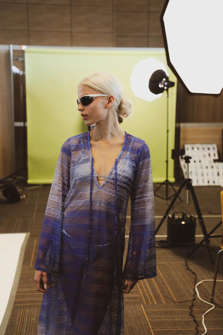 The Titipán Azul Profundo is inspired by the soft movement of the sea at the end of the day — waves, breeze, and fading light. Its open-knit texture creates a stunning translucent effect that lets your bikini and skin glow through in the most elegant, effortless way.